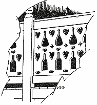 (Despite the fact that almost every old home of frame construction in Key West has "gingerbread" enclosing porches and bordering outside stairways, the residents are not agreed as to the proper name of the upright pieces between the handrails and the footings. Mr. Hernandez of Key West box factory and novelty works, who makes them on order, calls them "spindles" but he says he is not sure that this is the correct name.) After he had established his "import" business on a reasonably sound footing, Raul felt that he should advertise. He could not do this legally by putting notices in the newspaper, or on billboards, or by distributing hand-bills. Most operators of bars in Key West attracted the retail trade - both for liquor and gambling - by posting a notice reading "Club in Rear." Raul had an idea that was not in violation of the law and that also had decorative value. He reasoned that the gingerbread in the shape of bottles would tell passers-by that here was a convivial establishment, and that in addition to available liquor, the shapes of hearts, spades, diamonds and clubs would suggest that card-playing also was enjoyed in this domicile.